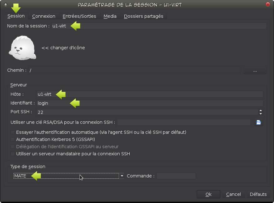 Il suffit de choisir la session u1-virt préalablement renseignée et d'entrer son mot de passe.