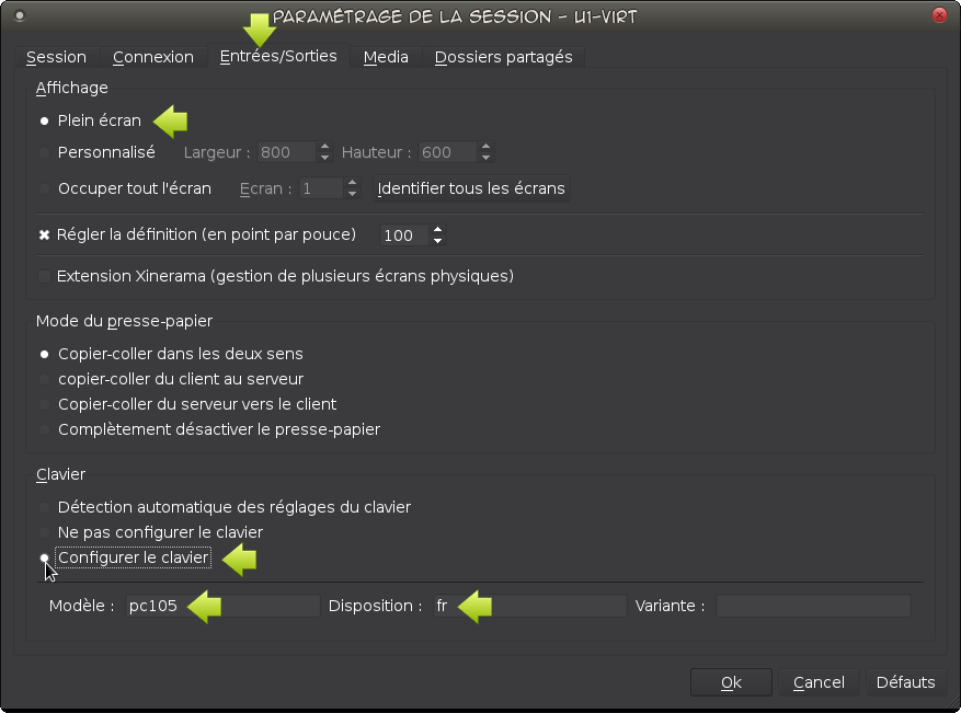 - Configurer le clavier, de type pc105, disposition fr